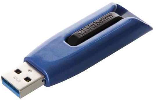 Verbatim Store 'n' Go V3 Max. Capacity 32 GB, USB version 3.0 (3.1 Gen 1), USB Type-A connector, Read speed 175 MB/s, Write speed 175 MB/s. Form factor Slide. Weight 10 g. Product colour Blue
