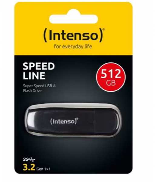 Intenso Speed Line. Capacity 512 GB, Device interface USB Type-A, USB version 3.2 Gen 1 (3.1 Gen 1). Form factor Cap. Weight 8 g. Product colour Black