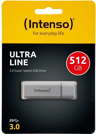Intenso Ultra Line. Capacity 512 GB, Device interface USB Type-A, USB version 3.2 Gen 1 (3.1 Gen 1), Read speed 70 MB/s. Form factor Cap. Weight 6 g. Product colour Silver