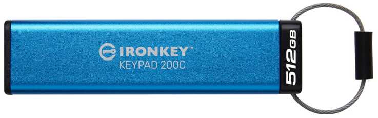 Kingston Technology IronKey 512GB USB-C Keypad 200C, FIPS 140-3 Lvl 3 (Pending) AES-256. Capacity 512 GB, Device interface USB Type-C, USB version 3.2 Gen 1 (3.1 Gen 1), Read speed 280 MB/s, Write speed 200 MB/s. Form factor Sleeve. Keypad integrated, Password protection. Weight 25 g. Product colour Blue