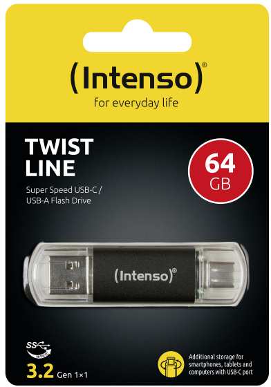 Intenso 3539490. Capacity 64 GB, Device interface USB Type-A / USB Type-C, USB version 3.2 Gen 1 (3.1 Gen 1), Read speed 70 MB/s. Form factor Cap. Weight 9 g. Product colour Anthracite