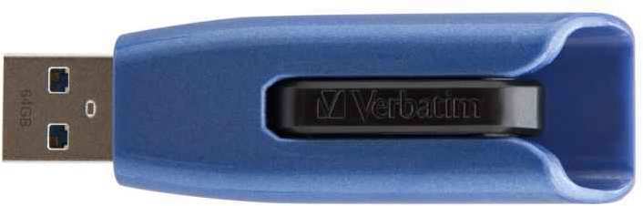 Verbatim Store 'n' Go V3 Max. Capacity 64 GB, USB version 3.0 (3.1 Gen 1), USB Type-A connector. Form factor Slide. Weight 10 g. Product colour Blue