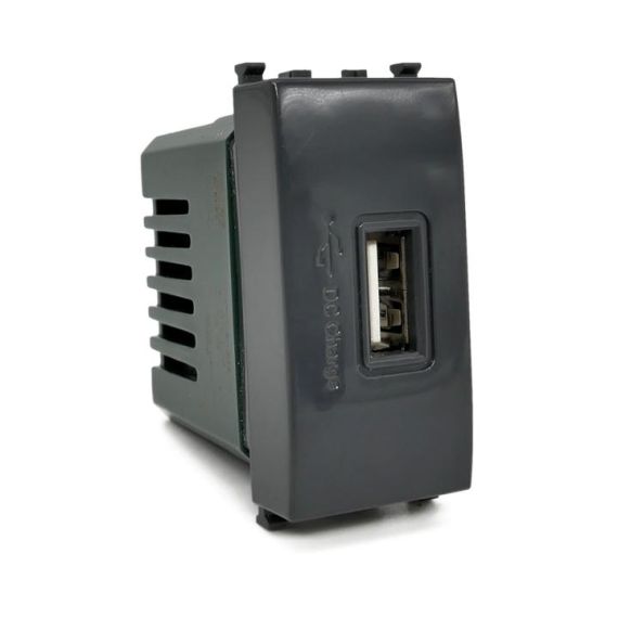 Alimentatore presa USB 5V 2A nero compatibile Vimar Plana
