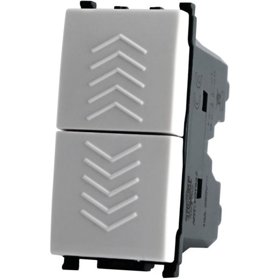 Moderno e funzionale interruttore a doppio pulsante usato in impianti elettrici civili e professionali, modulo di comando per persiane e molto altro.