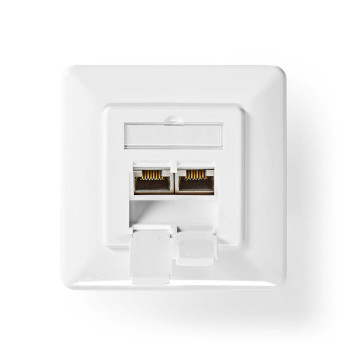 This RJ45 wall plate has two RJ45 network connections. It can be flat face mounted and is suitable for CAT 7.