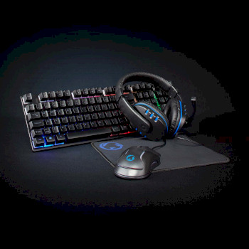 Ready, set and play with this gaming combo kit. This 5-in-1 gaming combo kit is the perfect way to get started with a new gaming setup. With an LED illuminated multi-colour keyboard and mouse, mousepad, over-ear headset, and an adapter cable this kit allows you to start playing with just one setup. It is plug and play, so it works quickly and easily on PC's and notebooks alike. The headset, keyboard and mouse can also be used with several game consoles for the most efficient gaming experience.