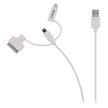 This charging cable is equipped with a USB Micro B connector to synchronise and charge your personal media. A lightning adapter and Apple 30-pin adapter are attached, to convert it to a cable that is also suitable for synchronising and charging: