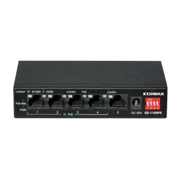 The Edimax GS-1105PE is a Long Range 5-Port Gigabit PoE+ Switch designed for using at home, or small and medium sized network environments. With 4 DIP switches, the PoE port can be manually set with the ON-OFF control to extend the PoE delivery distance to 200 meters or further. It also support port-based VLAN and QoSfunctions.