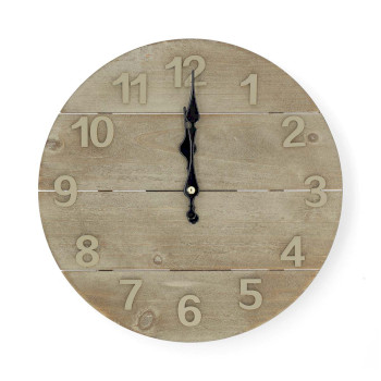 The rich-toned wood is shaped into a circular clock with a diameter of 30 cm. Easy to hang on the wall, the clock takes 1x AA battery (not included) and is equipped with a quartz movement for precision and accuracy.