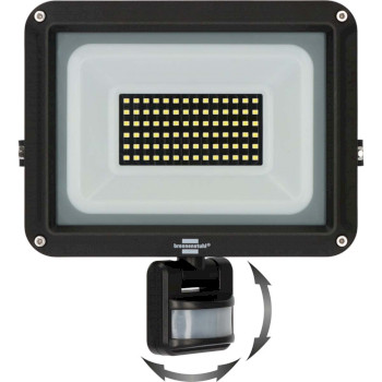 The JARO 7060 P LED Spotlight for wall mounting is an extremely energy-efficient LED Floodlight with 50W power that meets the highest demands. With IP65 protection (dustproof and jet-proof) and a safety glass pane for additional impact protection, the Spotlight is suitable for both indoor and outdoor use. The motion detector with adjustable twilight switch can be rotated horizontally and vertically and automatically triggers light at a detection range of up to 10m and a 180° angle of coverage. The light duration can be adjusted as desired - from 10 seconds to approx. 5 minutes. The built-in Everlight SMD LEDs impress with their exceptionally long service life and their special light diffusion for large-area illumination. The infrared motion detector ensures ideal, automatic illumination of, for example, entrance areas, driveways or carports and thus serves to increase safety. In addition, the luminaire convinces with the following features: