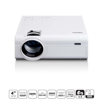 Transform your living room into a real cinema with the Lenco LPJ-280WH. With a brightness of 2800 lumens and a contrast ratio of 3000:1, you will experience excellent and clear image quality. Ideal for streaming your TV, movies, Netflix series, or games via a cast dongle (such as Chromecast). The resolution of this LCD projector is 800x480, and it supports Full HD 1080P content. Everything you need for your own home cinema at an affordable price!