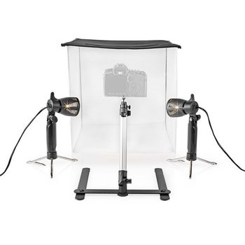 This convenient foldable photo studio is supplied with two lamps, four exchangeable background colours and a mini stand that can be adjusted in height. The nylon walls and lamps reduce sheen and sparkles in your pictures. Even for an unexperienced photographer it will now be child's play to create beautiful images that are correctly illuminated and have the right colour ratio.