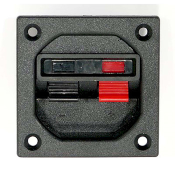 Loudspeaker terminal with recessed terminal board and foam sealing for airtight installation.