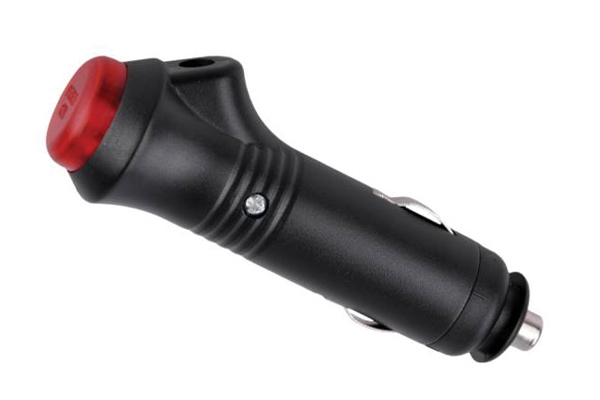 Cigarette lighter plug with on-off switch, for cable, 20mm glass fuse