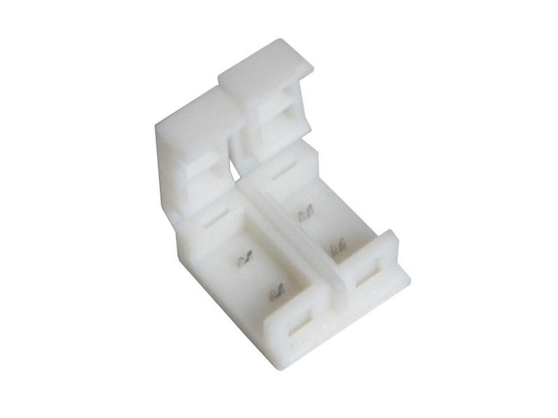 Napájecí spojka pro LED pásky 5050 o šířce 10mm s IP65. Spojka slouží k propojení více pásků v sérii bez nutnosti pájení .Do konektoru se jednoduše nastrčí LED pásek tak, aby pájecí kontakty na pásku směřovali proti kovovým kontaktům v plastu a konektor uzavřeme.