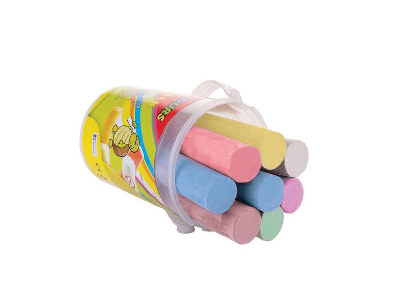- 8 pieces of chalk in a bucket.