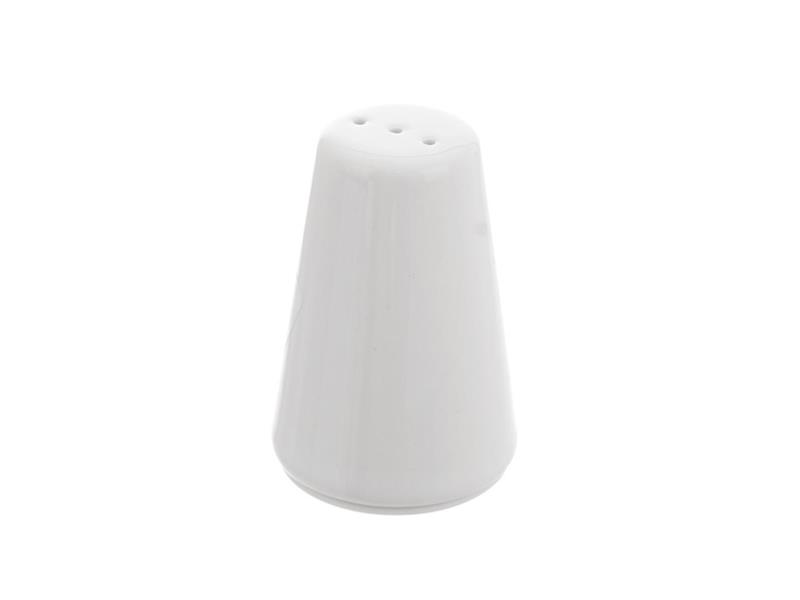 Salt shaker of simple shape. Filling from below after opening the plastic lid.