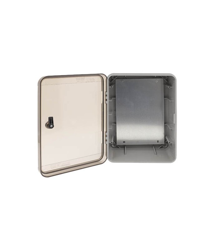 PANO series ABS DISTRIBUTION BOXES - with Halogen-Free PC body and Steel back-panel - In all boxes containing 1 plastic key and 4 bases for installing on the wall.