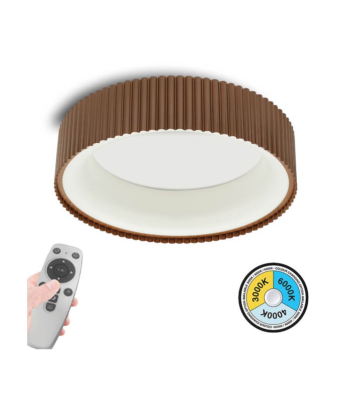 TANIA series PENDANT LIGHTING with Iron Base & PVC diffuser presents 2226Lm lighting performance and 20000Hours long lifetime.This 42W BROWN model includes 3xCCT LED for 120° light beam-angle as desired lighting flexibility.It's ready to be operated with its easy installation and maintenance.TANIA fixtures are operating with the use of remote control which is included in the package. From remote control you have the option to:- turn it on & off.