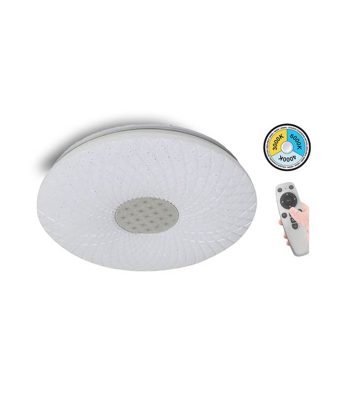 PEARL series LED CEILING LIGHTING with Iron Base & PVC diffuser presents 4680Lm lighting performance and 20000Hours long lifetime.This 72W model includes 3xCCT LED for 120° light beam-angle as desired lighting flexibility.It's ready to be operated with its easy installation and maintenance.PEARL fixtures are operating with the use of remote control which is included in the package. From remote control you have the option to:- turn it on & off.