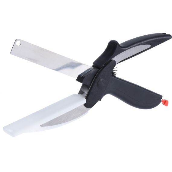 Forbici per tagliare alimenti con un comodo ripiano da taglio dove poter poggiare l'alimento da tagliare.