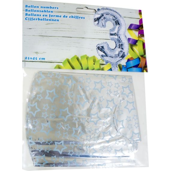 Palloncino gonfiabile argentato con decorazioni a stella, ottimo per feste di compleanno, anniversari e ricorrenze varie.