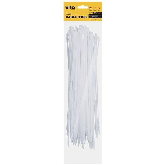 Le fascette per cavi VITO PLASTICK realizzate in NYLON 6 (PA6) sono di colore BIANCO e hanno un test di tensione di 40 kg. Nella confezione sono presenti 25 pezzi. La dimensione di una fascetta è 7,0X350 mm.