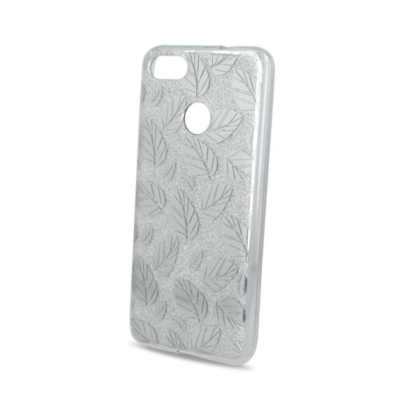 Cover per iPhone X in silicone TPU Slim Design Foglie Glitter