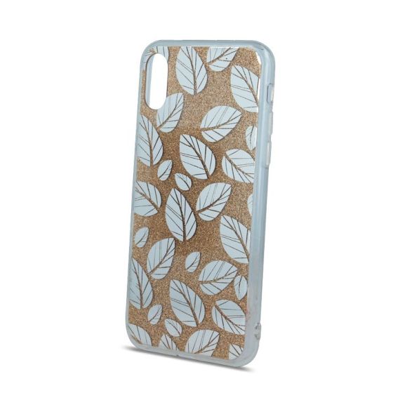 Cover per iPhone X in silicone TPU Slim Design Foglie Glitter