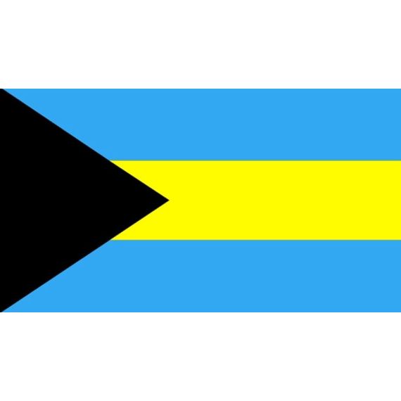 Bandiera nazionale e di stato a terra, adottata ufficialmente il 10 luglio 1973, giorno dellindipendenza. Proporzioni 1/2. Lazzurro-mare e il giallo-oro richiamano il mare dei tropici e le spiagge dorate delle isole. Il triangolo nero simboleggia la determinazione e lunità del popolo e le ricchezze naturali del paese.