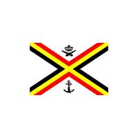 Bandiera della marina militare stabilita con decreto del 9 novembre 1947 e alzata per la prima volta il 30 successivo. Al centro compare lo stemma araldico dell'arma, che si differenzia da quello sull'insegna mercantile per la presenza della corona cosiddetta "marittima", turrita e rostrata, e per lo stemma di Venezia, con il leone armato di spada, poggiante sul libro chiuso e sulle onde del mare, e accompagnato da tre fiammelle (o tulipani) di incerto significato. Tale stemma deriva da un modello proposto nel 1939 e approvato dal re nel 1941, sul quale era sovrapposto al centro anche lo scudo di Savoia tra due fasci. Con Foglio d'Ordine n. 52 dello Stato Maggiore della Marina Militare in data 26 dicembre 2012 sono stati indrodotti miglioramenti nel disegno dello stemma (e conseguentemente delle bandiere) della marina.